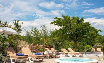 환경 및 위치: 호텔은 아르데슈 지역의 자연 경관과 조화를 이루는 위치에 자리해 있으며, 풍부한 자연 풍경과 조용한 분위기를 제공한다. 테라스, 수영장, 사우나, 자쿠지 등 다양한 외부 시설을 갖추고 있으며, 주변 관광지 접근성이 뛰어나다. 여름철에는 그늘진 테라스에서 식사가 가능하며, 계절에 따라 실내외 식사 공간을 선택할 수 있다.