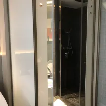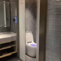 변기와 세면대가 대문 양쪽으로 나뉘어 있어서 개인적으로 불편합니다. 욕실에 수건을 걸 수 있는 곳이 없는 것도 불편합니다.