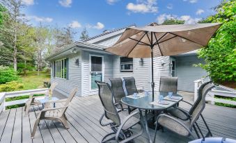 Located in Arnolda, the historic Ninigret Pond shore community, this wooded cottage provides a quiet and relaxing escape. This three-bedroom and two bath cottage provides modern comforts with the simplicity of single-floor living. The master bedroom has a full bath and the two guest bedrooms provide two full beds and one single bed and another full bath. The house has a spacious deck for outdoor sitting and eating or enjoy some friendly competition on the outdoor Shuffleboard court. Arnolda provides a private tennis and pickle ball court and there are abundant recreational opportunities (hiking, biking, tennis, basketball, pickle ball, playground and a fresh water swimming pond) next door at Ninigret Park. If you desire to stay closer to Cedar Hill, the Arnolda community’s private road is frequented by community walkers and bikers. lt is a short ¼ mile walk to the Boat Cove Association dock where kayaks are available for tenants to explore the beauty of Ninigret Pond and its abundant avian and aquatic life.