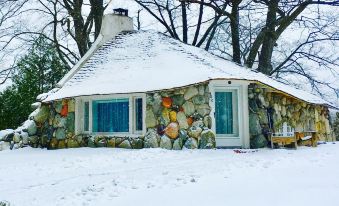 We visited Charlevoix for the second time to celebrate our niece's wedding and weekend festivities. We knew from our first visit that the mushroom houses were special, and we were excited to find one available for our visit. The home is small, but cozy (tall people need to be aware!). Our son was comfortable in the upstairs secret bedroom. Special touches with decor, books, and comfortable seating made the weekend while at the home very enjoyable. The large picture window providing views of Lake Michigan, summer flowers, and area wildlife were perfect.