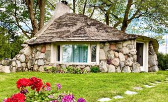 Architect and dreamer Earl Young created a magical world with his unique and eccentric stone cottages in Charlevoix. Half House is absolutely one of the most adorable homes you will ever see! Now you can experience it for yourself. Enjoy the sandy beach, lighthouse and breathtaking sunsets just outside your door. Half House is an easy two block stroll to the quaint village of Charlevoix for shopping, dining, marina, ferry, drawbridge and music in the park.