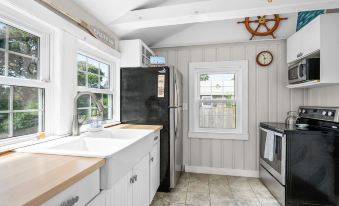 Enter this bright and updated cottage directly into a well appointed kitchen. You'll have use of all the appliances you need to make family dinners and a large double farmer's sink for washing dishes (this home does not have a dishwasher).