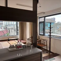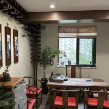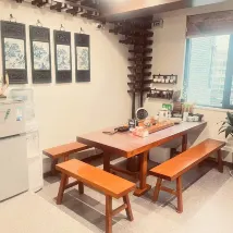 골목길에 처음 들어서면 매우 편안합니다. 은행나무가 가득해요. 8층에 올라가면 깜짝 놀라실 거예요. 매우 밝고 방도 밝으며 우울하지 않습니다. 매우 편안함을 느끼게 됩니다. 밖에 있는 것과는 다르죠. 마치 집에 돌아온 것 같아요. 건물은 주로 나무로 만들어졌습니다. 정말 좋아요. 저는 이 스타일을 정말 좋아해요. 만약 당신이 중국 스타일을 좋아한다면, 그녀의 집을 선택해도 좋습니다.
