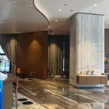 객실은 매우 만족스럽습니다. 프런트의 VV 서비스도 열성적입니다. 호텔 주변에 음식을 배달할 수 있는 로봇도 있습니다. 근처에 쇼핑할 수 있는 공원도 있습니다.
