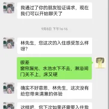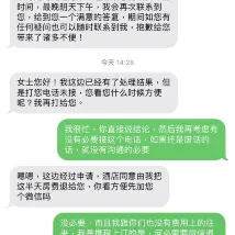 마지막으로 저는 27일에 반나절 객실 요금을 지불할 의향이 없다고 밝혔고, 프런트 데스크 직원에게 사과를 받아야 했습니다. 다음 사진은 프런트 데스크 매니저가 저에게 사과하는 문자 메시지입니다.(개인정보 보호 문제로 전화번호를 끊었지만, 제 휴대폰에는 여전히 그의 전화번호가 저장되어 있습니다.) 그는 하루 객실 요금의 반은 보상해 주겠다고 했지만, 프런트 데스크 직원이 사과하지 않아 전화를 받거나 위챗에 추가할 생각이 없었습니다.