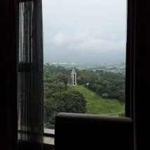 이 호텔은 판다 기지에서 차로 15~20분 거리여서 위치가 그리 가깝지는 않았어요. 호텔 시설은 좀 낡은 편이었는데, 특히 객실 내 가구(테이블, 수납장 등)가 올드한 느낌이었어요. 붉은색 원목 가구와 붉은색 바닥이 좀 구식으로 느껴졌습니다. 객실에는 캠핑용 테이블과 의자, 텐트도 비치되어 있었고요. 고층이라 그런지 경치는 좋았습니다. 어린이 세면도구는 잘 구비되어 있었고, 과일과 소량의 간식도 제공되었습니다. 객실 공간은 넓어서 전체적으로는 그럭저럭 괜찮은 편이었어요.