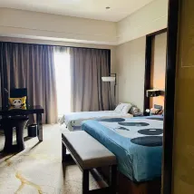 방이 넓고 화장대도 있어서 좋았습니다. 다만 샤워할 때 온수가 충분히 뜨겁지 않아 아쉬웠어요. 호텔 엘리베이터가 느리고 배달 로봇도 하나뿐이라, 음식을 시키면 로봇이 오는 데 시간이 오래 걸려서 직접 내려가서 받아오는 게 편했습니다. 호텔은 자이언트 판다 기지에서 아주 가까워 택시로 10분이면 도착할 수 있어 편리했어요. 체크아웃 시간이 오후 2시여서 판다를 보고 와서 샤워까지 하고 여유롭게 퇴실할 수 있었던 점이 특히 좋았습니다. 전반적으로, 아침 일찍 판다를 보러 가려는 여행객들에게 아주 적합한 호텔입니다.