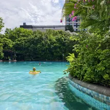 객실은 괜찮았어요. 아이들이 야외 수영장을 정말 좋아하며 신나게 놀았어요. 다만 실내 수영장에는 아이들용 풀이 따로 없었고, 날씨가 더워서 햇볕을 피해 저녁 늦게나 물놀이를 할 수밖에 없었던 점은 아쉬웠어요. 실내에도 아이들이 놀 수 있는 시설이 잘 갖춰져 있어서 어른들은 좀 편하게 쉴 수 있었어요. 전반적으로 가족 단위 여행객에게 아주 적합한 곳이에요. 저녁 뷔페도 있었지만 저희는 이용하지 않았고, 배달 음식 시키는 것도 편리했어요. 근처에 판다를 보러 가기도 좋았고, 가까운 식물원에도 들러 구경했습니다.