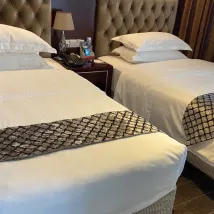 트윈룸의 한 침대는 침구가 바뀌었지만, 다른 침대는 바뀌지 않았습니다.