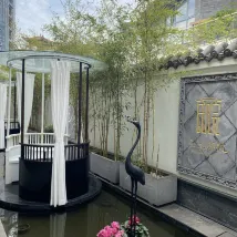 로비는 작지만 서예를 할 수 있는 공간과 차 마시는 공간이 인상깊었고 정원 곳곳의 풍경이 아름다웠습니다. 무엇보다 데스크 직원분이 지나다니며 인사해주시며 친절했습니다. 방안은 ai 스피커가 있어 커튼을 닫거나 열때도 음성으로 가능해요 하지만 중국어로 해야합니다!! ㅠㅠ