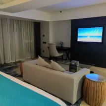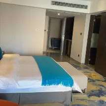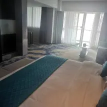 방은 매우 넓습니다. 욕실도 매우 넓습니다. 넓은 발코니가 있습니다. 편안하게 주무세요. 침대는 일반 킹 사이즈 침대보다 매우 큽니다. 방에서 담배 냄새가 나지 않습니다. 욕실과 복도를 따라