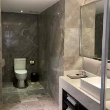 큰 방의 호텔 전용 발코니가 있습니다. 욕실은 매우 훌륭하고 시설이 완비되어 있습니다. 서비스 직원은 매우 좋습니다.