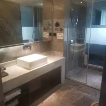 전반적으로 호텔은 몇 가지 사소한 결함이 있지만 매우 좋습니다. 호텔에는 에어컨이 아닌 난방만 켤 수 있는 중앙 에어컨이 있습니다. 또 다른 점은 샤워실 아래 노즐이 너무 낮아서 쪼그려 앉아야 닿을 수 있다는 점이다. 머리 위 노즐이 깨져서 목욕이 불편하다.
