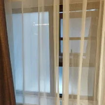 저는 패밀리룸을 선택했습니다. 창문이 있다고 했는데, 막상 가보니 전혀 그렇지 않았습니다. 한쪽 벽이 흐린 필름으로 덮인 창문처럼 보였는데, 열 수 있는 창문은 아니었습니다(아니면 제가 어떻게 여는지를 몰랐던 걸까요?). 그런데 방들을 지나가다 보니 방들이 모두 연결되어 있는 것 같았습니다. 제 방은 코너 방도 아니었고, 건물 쪽으로는 전혀 나 있지 않았습니다. 방은 꽤 작았지만, 외부 세면대가 있어서 많은 인원이 묵기에 편리했습니다. 한 명은 세수를 하고 다른 한 명은 화장실을 사용할 수 있었습니다. 호텔 입구는 건물 측면에 있고, 엘리베이터를 타고 4층으로 올라가면 됩니다.