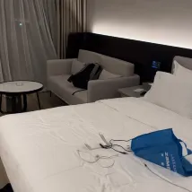 업무차 이 호텔에 체크인했는데 전체적으로 기분이 좋았습니다. 프론트가 매우 밝고 지하철 입구와 매우 가깝습니다. 매우 편리합니다.