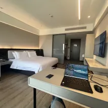 호텔은 저녁에 일을 하고 싶은 사람들에게 가장 이상적인 위치는 아니었습니다. 짧은 택시 여행이겠지만 비용은 매우 저렴할 것입니다. 그러나 작은 편의점, 맥도날드 및 기타 몇 가지 음식을 선택할 수 있었습니다. 호텔 외부.. 방은 매우 넓고 현대적이며 첨단 기술을 갖추고 있었습니다. 직원들은 매우 도움이 되었고 우리를 위해 택시를 예약해 주었습니다. 우리는 청두 팬더 센터를 방문하기 위해 여기에 머물렀고 택시로 약 25분 거리에 있었지만 비용은 매우 저렴했습니다.
