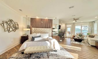 This is such a great property. It is two studios combined, they are connected by an adjoining door. You can also rent them with our other smaller listings or our bigger ones, the "Lakefront Compound Sleeps 58+" or the "Lakefront Mini-Resort w/ Pool Sleep 70+". This studio is around 200-300 ft from the main house BUT if you only want to rent this studio, no problem!