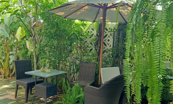 환경 및 위치: 숙소는 차량이나 스쿠터를 이용해 도심까지 접근 가능하며, 주변 식당과 편의시설이 가까워 편리함을 제공합니다. 공용 공간은 식물과 물을 활용한 조경으로 편안한 분위기를 조성하고 있으며, 방은 청결하고 조용한 환경을 유지하고 있습니다.