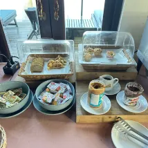 조식은 가짓수가 별로 없어서 달걀요리와 과일로 배를 채우는 정도입니다. 킹베드는 7세 아이와 부부가 함께 자기에 충분했어요.