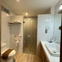 빌라동에 묵었고 넓은편입니다. 욕실은 순간온수기가 설치되어있고 미지근한물만 나와서 샤워하기 조금 불편했어요.