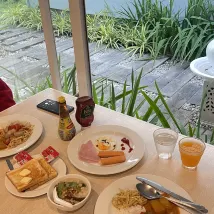 방은 매우 깨끗하고 조용합니다. 차가 없으면 불편하지만, 수영장 방이 수영장으로 연결되어 있어서 좋습니다. 아침 식사 레스토랑은 온라인 디자이너 미학으로 매우 예술적입니다. 조식이 심플한게 맘에 들고 전반적으로 괜찮습니다. 아이들이 아주 좋아해요