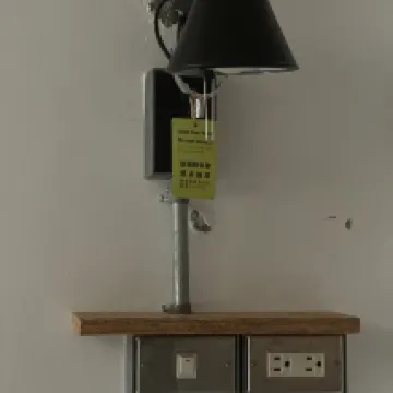 욕실에 위험한 설치가 되어 있는데, 벽에 헤어드라이어를 고정해 놓고 샤워기에서 나오는 물이 욕실 전체를 적시므로 젖은 발로 헤어드라이어를 사용해야 합니다. 전기 고장 시 치명적인 상황이 발생할 수 있습니다.