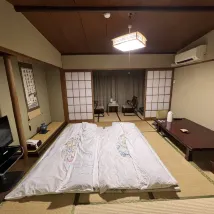 아주 고풍스러운 일본식 호텔이었어요. 엄마와 언니가 처음 묵었는데, 두 분 다 너무 좋아하셨어요. 다다미도 아주 편안했고요. 아래층에 있는 온천은 거의 비어 있어서 마치 개인 목욕탕처럼 느껴졌어요. 후타카이치는 정말 조용하고 살기에 완벽한 곳이에요.