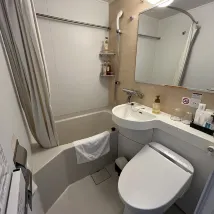 호텔은 매우 깨끗하고 신축이라 좋았습니다. 프론트 직원분들도 아주 친절했어요. 호텔 내에 레스토랑이 있었고, 조식도 괜찮은 편이었습니다. 조식은 서양식과 일식 중에 고를 수 있었는데, 저희는 일식을 선택했습니다. 호텔은 기차역에서 매우 가까웠고, 주변에 먹을 곳도 많아서 편리했습니다.