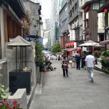 루쭈먀오(鲁祖庙)에 있는 이 독채 호텔에 묵게 되었는데, 정말 좋았습니다. 호텔은 루쭈먀오 옛 거리 안쪽에 자리 잡고 있는데, 입구 바로 앞에 꽃 시장이 있고 꽃을 파는 상점들도 많아서 정감 있고 활기찬 분위기가 느껴졌어요. 호텔은 작은 마당 안에 있어서 대로변 소음으로부터 떨어져 있다는 점도 좋았습니다. 해방비(解放碑)와도 가까워서 도보 5분이면 도착할 수 있는, 번화가 속의 조용한 위치였습니다.