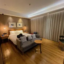 와, 충칭의 교통은 정말 눈을 뜨게 합니다. 보행자 예의가 없고 비자동차 차선이 있는 데 익숙하지 않습니다. 호텔은 사무실 건물에 있으며, 5층 전체에 바와 프런트 데스크가 있습니다. 체크인은 같은 층에서 하는데, 매우 편리합니다. 엘리베이터를 기다리는 시간은 꽤 깁니다. 일회용 변기좌석이 있어서 좋았고, 매일 밤 트레멜라 수프 간식을 준비해 놓았는데, 매우 배려심이 많습니다. 나이트라이프는 매우 풍부하고 새벽 1~2시까지도 여전히 활기가 넘칩니다. 관음가는 호텔 맞은편에 있습니다. 제가 나갈 때마다 지하와 복도를 거쳐서 가야 합니다. 제가 느낀 전반적인 느낌은... 여기서 캐주얼하게 지내도 괜찮다는 것입니다.