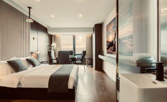 房間乾淨敞亮,床軟乎乎的,一夜好眠。前台服務熱情,入住超迅速,周邊吃飯、逛街都方便,下次還來