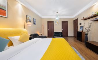 房間很温馨,床也很大,睡着挺舒服的。重點是樓下的奶茶店牌子差不多都集齊了,太棒了!這個價格住這樣的房間非常值。老闆服務很周到,有問題都第一時間幫忙解決了,微信回覆也很快。下次還過來這邊。