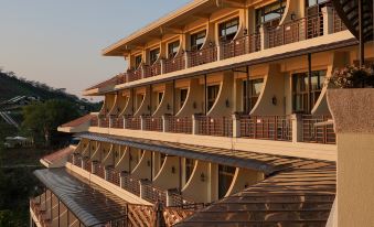 房間和陽台都十分寬敞,酒店園區主打水上槳板、研學和親子活動,場地設施還是不錯的,有吃飯的地方,也有一個養生咖啡飲品店,還有蹦床、吊牀這些公共活動區域。開車出去吃飯也很方便。衹是40°的夏天室外太曬太熱了,入住率不是很高,但是工作人員態度熱情友好,床品乾淨舒服,水壓很大,春秋天來應該是很不錯的。太陽下山後,晚上在陽台坐坐很舒服,湖面吹來的風也涼爽,還能看星星。就是夏天來的話,建議提前讓他們把房間空調開起,這麼大的房間衹有一個掛機,温度降得比較慢。