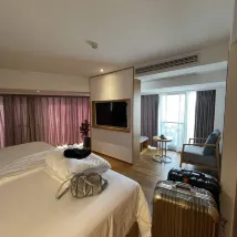 Staff very passionate and helpful, they also serve some snack during the tea break .Hotel is located opposite shopping mall and downstairs also having a 24hr convenient shop, very convenient to buy eat and drink here and very enjoy the travelling in Chongqing💕