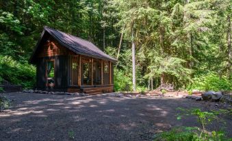 Relax and unwind in our custom built, one-of-kind cabin. The cabin is nestled up on a forested hill above our main cabin. It's sits on 4 acres of private wooded land, bordering Mt. Hood National Forest Land. A perfect getaway for couples looking to spend a romantic weekend in the woods or a home-base for those who are here to enjoy everything Mt. Hood has to offer. Hiking, fishing, skiing are only minutes away!