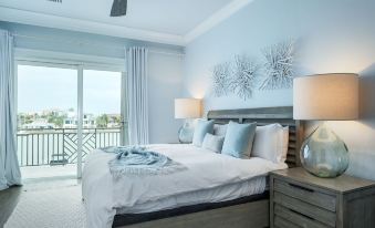 The Primary Suite features a King bed, large master bathroom, private balcony, walk-in closet, and SmartTV. See the best bay views in the home from this large and beautiful Master suite.