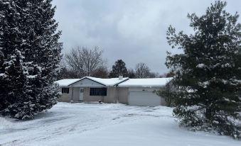 It does not matter what your pleasure is up north this location has it all. Four seasons of fun with snowmobiling and skiing in the winter, golfing and Lake Michigan in the summer, and fishing year round. House includes 3 bedrooms and 1.5 baths where you can accommodate 11 sleepers. The property is easy to find on M115 and minutes to Crystal Mountain Resort. Relax in the back yard with a campfire after a busy day of playing or just hang out by the trout stream. Fenced in area for your dogs to play and if they love water they will love the stream. Less than an hour in each direction you can visit Frankfort, Traverse City, Manistee and Cadillac. High speed internet (fiber optic) for streaming or working remotely. The property adjoins the ORV and snowmobiling trails for easy access to ride. There are two large driveways which are both suited for trailers. The back driveway is a large circle and the front is a pull through asphalt drive. Kids will enjoy the garage recreation area with foosball, arcade game, and air hockey. There are two separate living rooms with smart TV’s to connect to. There is onsite laundry. Depending on the season you can find trout, steelhead and salmon in the stream as well as a ton of frogs. This home was renovated this season and just became a short term rental. You will fall in love and want to keep coming back. Please note that the property does have outdoor security cameras merely for security when unoccupied.