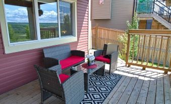 Just an hour drive from Banff National park is this western themed 1 BR suite with huge entertainment space both indoors -electric fire place, HONESTY BAR ,a piano and a projector screen and outdoors-Valley and Mountain views with easy access to walk/bike trails . Experience true feeling of Alberta during your stay.