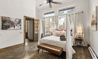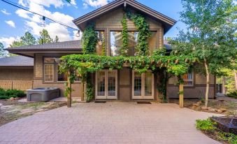 Experience majestic views in Flagstaff on a 2.5-acre property surrounded by lush trees with panoramic views of the San Francisco Peaks. Our 2200 sq ft home offers handcrafted interiors and top-notch amenities.