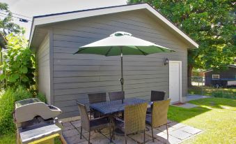 ✔ Relax in the private backyard – Patio seating, Weber grill & secure garage for cars, bikes & gear