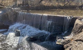 Step into a relaxing & nature filled world with this peaceful one room cabin. Set beside a small creek that features its own tiny waterfall and surrounded by trees, it’s the perfect spot to get away. ☀️