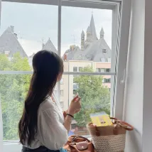 호텔은 쾰른 대성당⛪️ 바로 옆에 있습니다. 문을 열면 대성당이 보입니다. 문 바로 앞에 레스토랑 거리와 상업 거리가 있어 식사와 쇼핑에 매우 편리합니다. 대성당 옆에는 기차역이 있어 독일의 다른 지역으로 여행하기에 편리합니다.