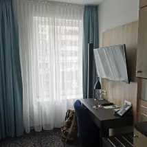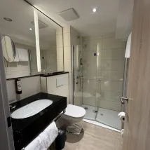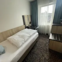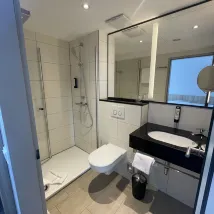 호텔은 쾰른 중앙역에서 도보 5분 거리에 있으며, 대로변에 눈에 잘 띄는 표지판이 있어 찾기 쉽습니다. 아래층에는 여러 레스토랑이 즐비한 광장이 있습니다. 프런트 데스크 직원들은 매우 친절했고 제 방 요청을 들어주었습니다. 도시세는 5유로도 안 되었습니다. 싱글룸은 작았지만 편의시설은 아주 새 것이었습니다. 이불은 정말 폭신하고 편안했습니다. 방에서 교회 종소리가 들렸습니다. 혼자 여행하는 사람들에게는 완벽한 곳입니다. 유일한 단점은 가장 가까운 슈퍼마켓이 도보 10분 거리에 있다는 것입니다. 전반적으로 이곳에 묵는 것을 추천합니다.