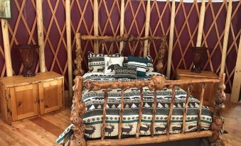 Located 7 miles from West Glacier Entrance in a secluded wooded area, unplugged from stress with propane fireplace and attached bathhouse. Our yurts are just what you are looking for in your MT escape. These eco-friendly yurts are nestled in a wooded property, just 7 miles from the West Glacier entrance for Glacier National Park. This yurt features a queen-size bed, kitchen area with sink, fridge, and cooking stove. Also includes a sitting area, dining table, and propane fireplace. Each yurt also has an attached bathhouse with shower, toilet, and vanity. Quiet, personal space. About pets:No pets allowed.About checkOut:Check out before 11:00 AM.About children:Children allowed: ages 0-17.About checkIn:Check in after 4:00 PM.About smoking:Smoking is not permitted.About minBookingAge:Minimum age to rent: 21.About events:Events allowed: family gatherings, birthday parties, weddings.Maximum event attendees: 9,Keep it tone down please, no big loud events..