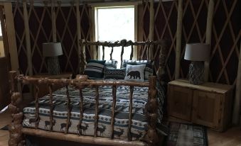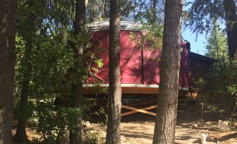 Our yurts are just what you are looking for your MT escape. These eco-friendly yurts are nestled in a wooded property, just 7 miles from the West Glacier entrance for Glacier National Park. This yurt features a king size bed, kitchen area with sink, fridge, and cooking stove. Also includes a sitting area, dining table, and propane fireplace. Each yurt also has an attached bathhouse with shower, toilet and vanity. About pets:No pets allowed.About checkOut:Check out before 10:00 AM.About children:Children allowed: ages 0-17.About checkIn:Check in after 3:00 PM.About smoking:Smoking is not permitted.About minBookingAge:Minimum age to rent: 21.About events:No events allowed.