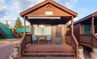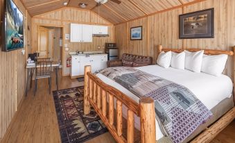 The property owner and all staff we interacted with were all awesome - very caring and concerned about providing a great experience for all. The Elk Crossing studio unit we stayed in was beautifully decorated and had everything we needed, plus excellent Internet connectivity while we were there. The patio outside the unit was very enjoyable too! If you are traveling with a person using a wheelchair I suggest making alternative reservations. We made this studio work for us, but only because my husband can walk short distances. It was impossible to use the wheelchair on the loose rock pathways and grass from the parking space to the unit. The owner did allow us to drive around to the back of the unit to unload, but the slightly steep uphill climb up to the unit was difficult for my husband. We enjoyed our stay though!