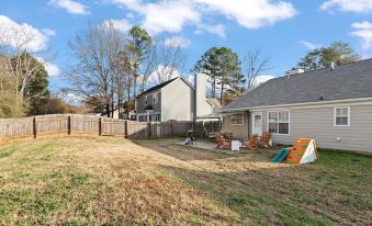 This stylish, family-friendly home is the perfect blend of relaxation and convenience for getaways or work travel! Kids will enjoy the chalk wall and small outdoor playset, along with a fully fenced yard for pups. The outdoor space features a firepit, grill, and covered dining area, perfect for enjoying time together. Centrally located, Cornelius, NC, you'll be close to scenic parks around Lake Norman, delicious dining, and exciting attractions for all, making it perfect for anyone!