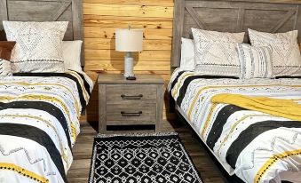 **FALL/WINTER RATES NOW AVAILABLE! AT&T CELL SERVICE IS HERE NOW ! PET FRIENDLY $35 pet fee** Forget the Rest, Stay at The Best, & Enjoy Paradise Under the Stars! Our cabin (La Joellen) features a full kitchen, stone shower and sleeps a maximum of 4 guests with 2 queen beds featuring memory foam mattresses. Cabin is just a short walk down the hill to the riverbank. No smoking, no vaping in the cabin. Any residual smoke smells will result in additional cleaning fees and no future booking. Pets are welcome down at the river sites. Please check calendar or message me about availability. WE ALSO HAVE THE OPTION TO BOOK THE CABIN AND BOTH 30 AMP HOOKUPS ON THE WATERS EDGE, SEE BOOK WHOLE SITE IN SEPARATE LISTING On Hipcamp.com If You Have A Large Party and Guests Who Also Want to Bring Their RV's or You Want the Entire River Front Pavillion and Amenities To Yourself, This Might Be A Great Choice.