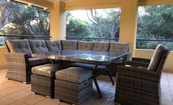 Situated at the end of a quite no through road with beach access to Red Rocks beach directly opposite your front door and Aussie Golf Ranch at the back of the property. Ideal for a family or couples.