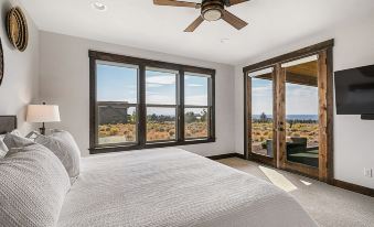 Located in Central Oregon's Brasada Ranch Resort community, this home has unobstructed mountain and butte views out all windows and comes fully stocked with all the features you'd expect to have for a luxury stay. Close proximity to Smith Rock, hiking trails, mountain biking, Mt. Bachelor, Bend breweries and restaurants, and much more. The home is about 1/2 mile from the center of Brasada Ranch, where the Ranch House, Athletic Center, General Store, and other resort facilities are located--a leisurely bike ride or short drive away.